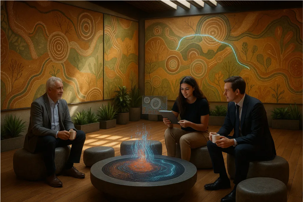 The AI Dream Centre is where timeless cultural wisdom meets the latest in artificial intelligence. While creators and technologists explore immersive AR and VR storytelling, hands-on AI bootcamps, and start-ups built to tackle real-world problems, Elders lead ethical decision-making inside its timber-and-glass halls.